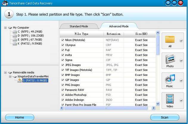 Card Data Recovery for Windows allows you to preview photos and music before recovery. You can preview either during scanning or after scanning, so that you recover the right files you want.